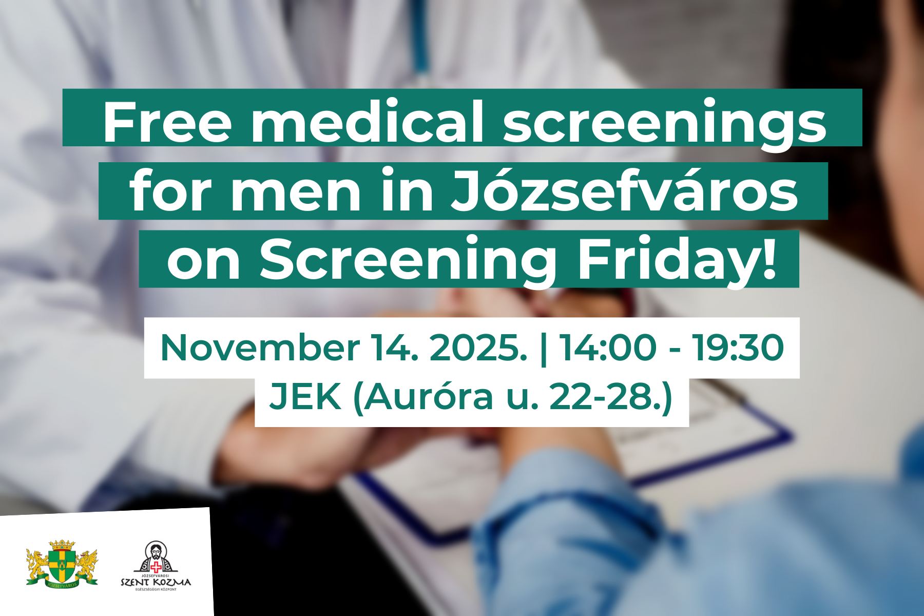 On Friday, November 14, between 2:00 p.m. and 7:30 p.m., there will be a free men’s screening day at the Szent Kozma Health Center in Józsefváros.