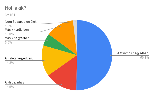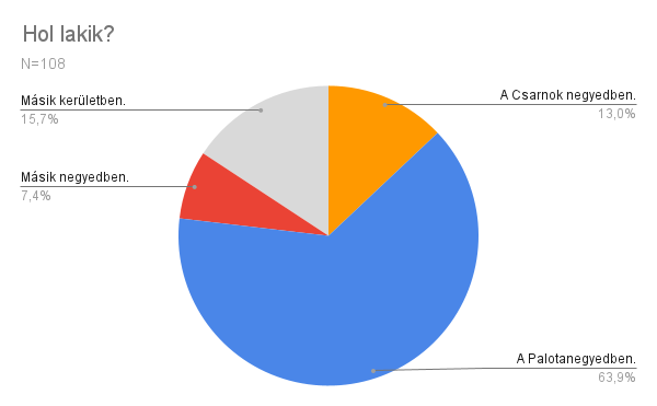 A kitöltők több, mint 60%-a a Palotanegyedben lakik, 13%-uk a Csarnok negyedben. Voltak olyanok is akik egy másik negyedben vagy kerületben laknak.