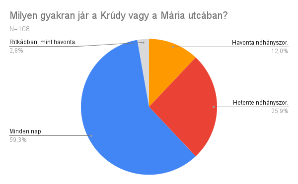 A válaszadók közel 60%-a mindennap, 25%-a pedig hetente néhányszor sétál végig a Krúdy vagy a Mária utcában.