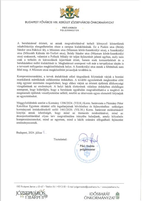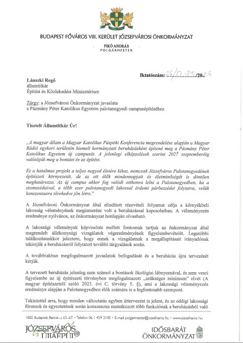 Az önkormányzat a javaslatcsomagot összeállította és 2024. július 9-én elküldte Lánszki Regő építészeti államtitkárnak.