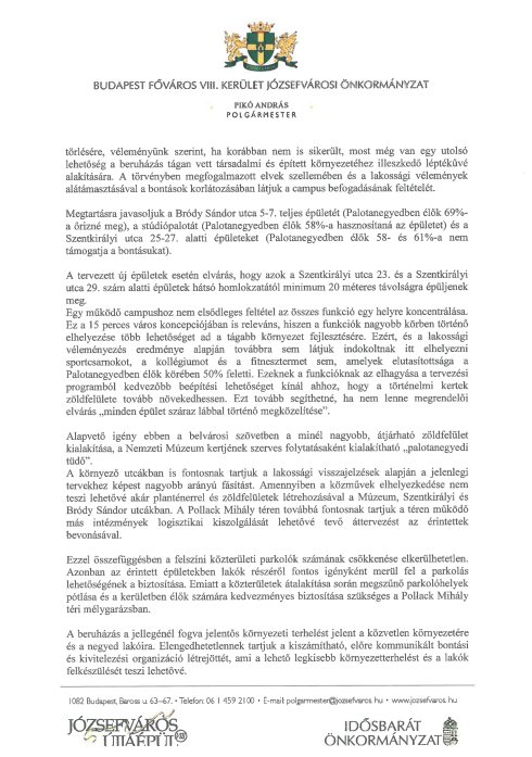 - Továbbra sem látjuk indokoltnak itt elhelyezni sportcsarnokot, a kollégiumot és a fitnesztermet sem, amelyek elutasítottsága a Palotanegyedben élők körében 50% feletti.