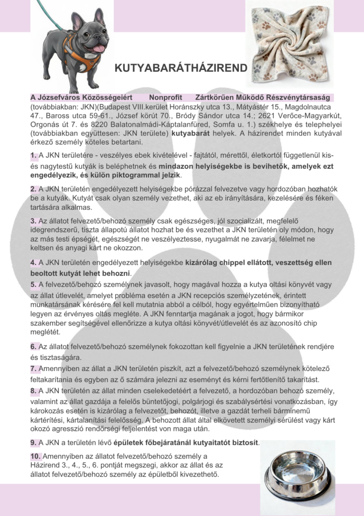 Az ügyfelek által behozott kutyákra pedig az alábbi házirend vonatkozik: