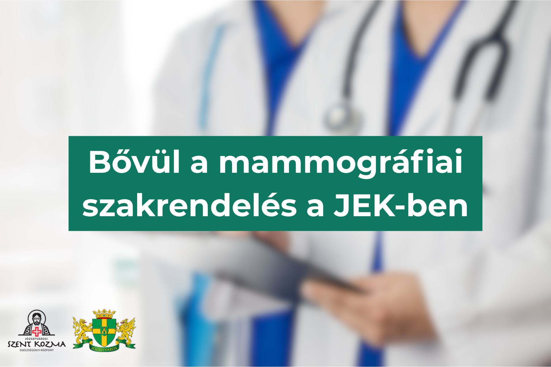 2026. január 22-től a Józsefvárosi Szent Kozma Egészségügyi Központ (JEK) mammográfiai szakrendelése kibővített rendelési idővel áll rendelkezésre!