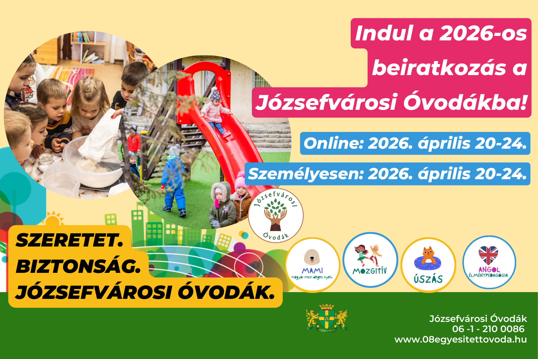 Az idén április 20-tól személyesen és online is beirathatja gyermekét – a Józsefvárosi Óvodák jó szívvel javasolják a személyes beiratkozást, hogy ezt az alkalmat is megragadhassák arra, hogy közösen beszélgethessenek a gyermekekről és igényeikről. Addig is szeretettel, és programokkal várjuk Önt és gyermekét március 19-én, e hét csütörtökön az oviexpón, ahol minden óvodánk bemutatkozik, és találkozhatnak az óvodapedagógusokkal is. És várjuk az ismerkedős nyílt napjainkon is! Április 20-tól pedig egy héten át várjuk a beiratkozós napokon.
