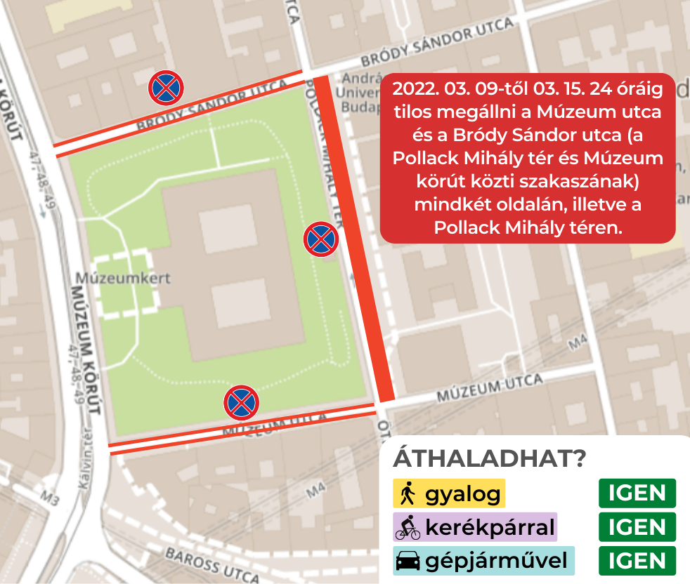 Múzeum, Bródy Sándor utca, Pollack tér megállási tilalom március 9-15.