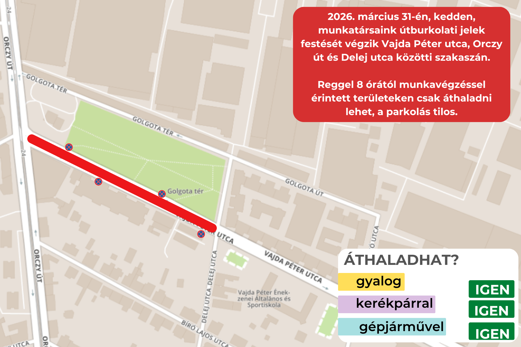 - A munkálatok időpontja: 2026. március 31. (kedd), a munkálatok aznap be is fejeződnek.