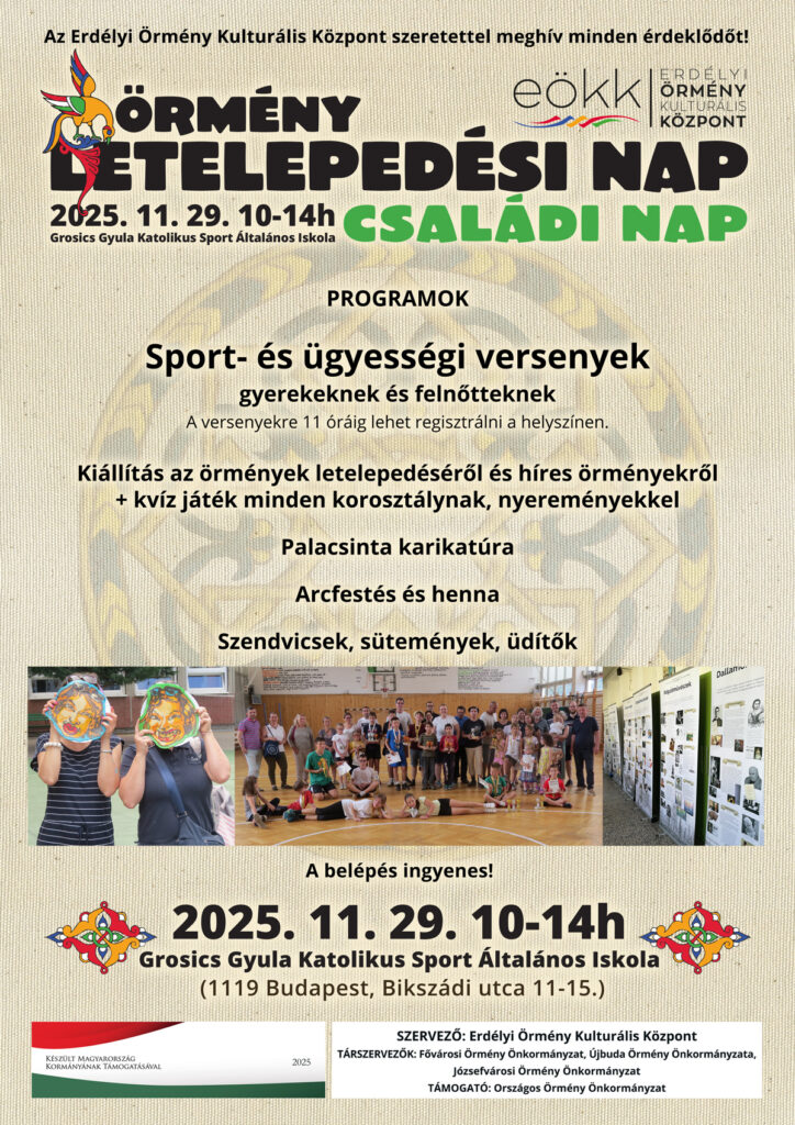 Az Erdélyi Örmény Kulturális központ szeretettel meghív minden érdeklődőt az Örmény letelepedési és családi napra.