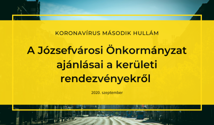 Utolsó frissítés: (Létrehozva: )Kérjük, kövessék ajánlásainkat és vigyázzunk egymásra! A Józsefvárosi Önkormányzat 2020. szeptember 7-től saját beltéri és kültéri rendezvényein a következő eljárásrendet követi, amelyet ajánlásként fogalmazunk meg minden józsefvárosi közösségi eseményhez és rendezvényhez. Kérjük, ha tehetik, tartsák be ajánlásainkat! Beltéri rendezvények – Minden előírást előzetesen és a helyszínen is kommunikálni kell. – A rendezvény helyszínét a rendezvény […]