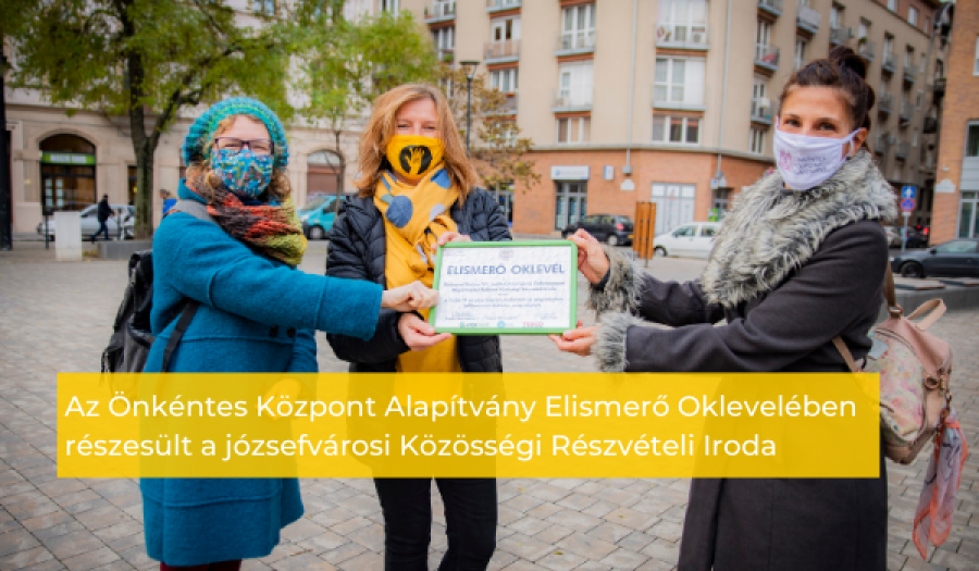 Az Önkéntes Központ Elismerő Oklevelében részesült a Közösségi Részvételi Iroda