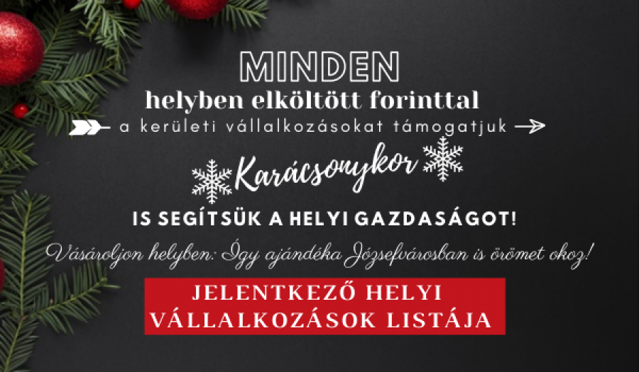 Utolsó frissítés: (Létrehozva: )A helyben elköltött forintokkal a kerületi kisvállalkozásokat, boltokat, szolgáltatókat, éttermeket, kávézókat és civil közösségeket is támogatni tudjuk. Soha nem volt ez még olyan fontos, mint most, amikor a koronavírus következményei különösen sok terhet rónak rájuk. Tavasszal már megmutattuk: a józsefvárosiak összefogása helyben nagy segítséget jelentett. Az idei karácsony hasonlóan nehéz kihívások elé állítja a kerületi […]
