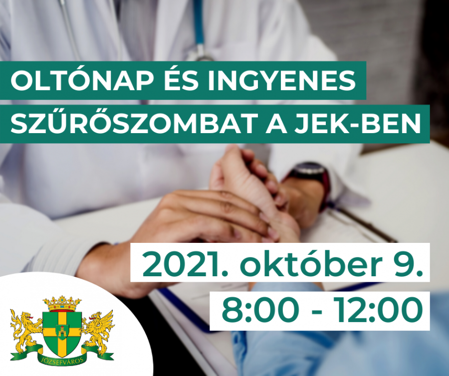 Utolsó frissítés: (Létrehozva: )COVID OLTÁS ÉS INGYENES SZŰRŐSZOMBAT a józsefvárosi Szent Kozma Egészségügyi Központban 2021. október 9-én (szombaton) 8-12 óra között Ezen a délelőttön ezek a védőoltások választhatók első, második vagy harmadik oltásra: Moderna, és Janssen (egy adag). Kerületi lakosok előnyben részesülnek. A nagy érdeklődésre tekintettel kérjük, hogy az alábbi telefonszámokon jelentkezzenek be előre! Ezúton is felhívjuk a […]